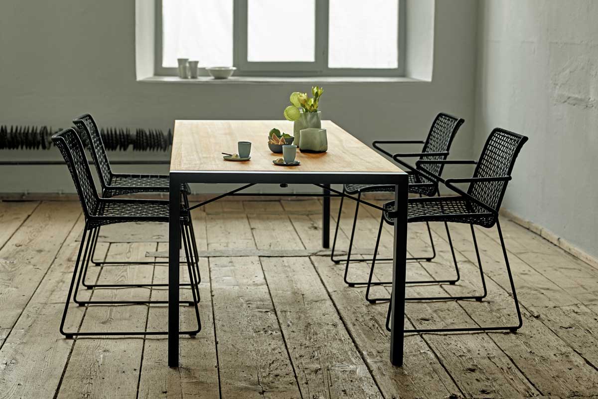 Funktionsstarker GartentischEin simpler Mechanismus lässt die Möbel im Handumdrehen zusammenklappen – so kann man sie für den Winter platzsparend verstauen. Tische und Bänke werden von einem massiven Gestell in Edelstahl getragen, für den individuellen Look bieten wir das Gestell nun auch farbig pulverbeschichtet an. Natürlich sehen wir Flip in erster Linie draußen auf Ihrer Terrasse. Aber genauso in Ihrem Wohnzimmer, im Wintergarten oder einem Besprechungsraum.