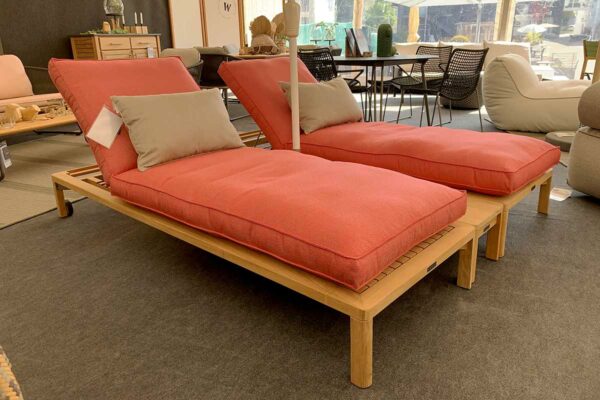 Sofort verfügbar und lieferbar.Liegen-Kombination inklusive Polster, Anstelltisch und Bohrung für Sonnenschirm