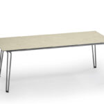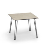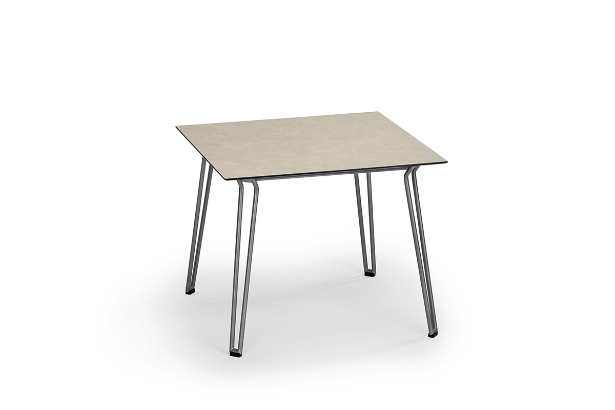Die passenden Tische der Serie SLOPE sind sowohl mit Beinen aus Edelstahl gestrahlt oder pulverbeschichtet erhältlich. Unterschiedliche Größen und Tischplatten stehen zur Auswahl.