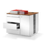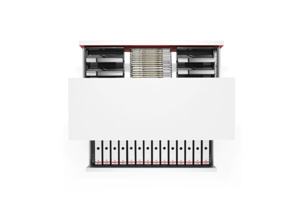 Schrankvarianten: Regal, Schiebetürschrank, Querrollladenschrank, Flügeltürschrank, Garderobenschrank, Hängehefterschrank, Kombischrank, Apothekerschrank, Caddies/Mobile, Stehpult, Technikcontainer