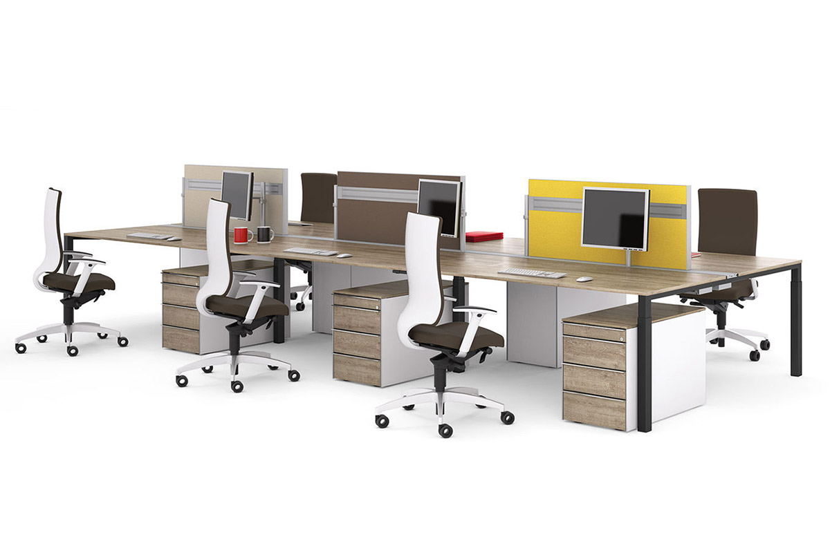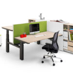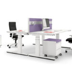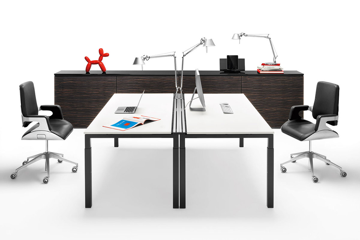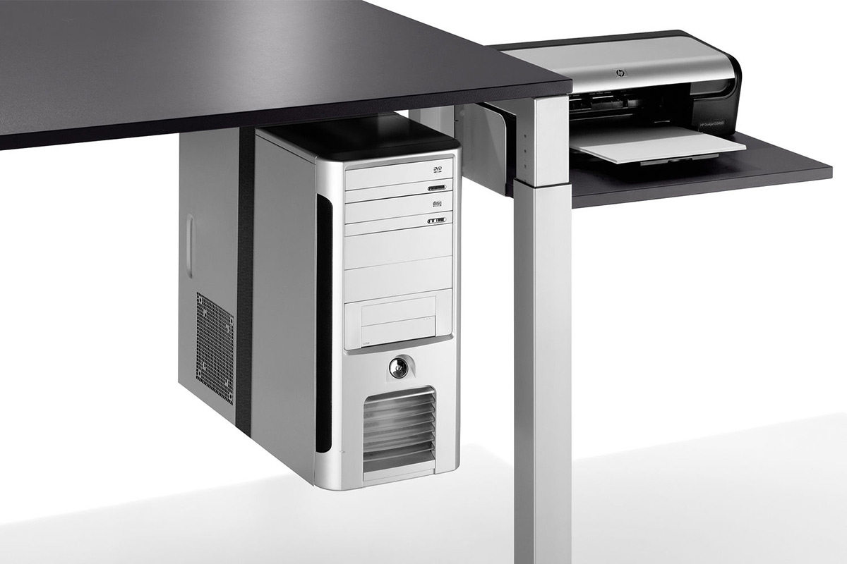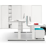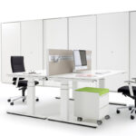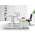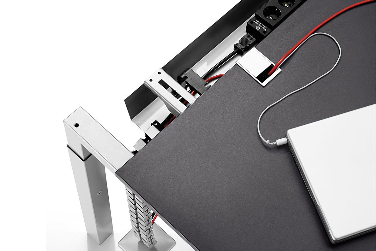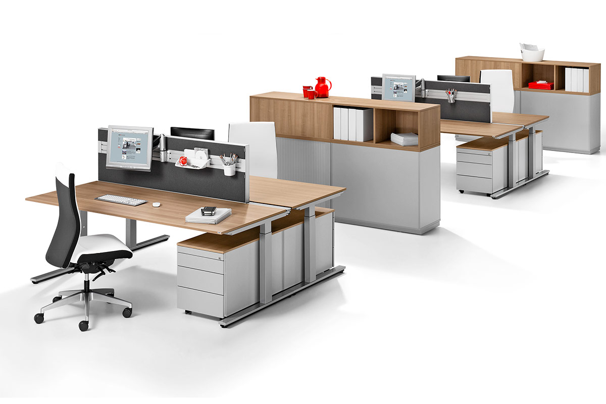 Entsprechend der neuesten EU-Norm EN 527-1:2011 bietet das flexible Tischsystem serienmäßig eine werkzeugbasierende Höheneinstellung von 65 bis 85 cm sowie gegen Aufpreis eine Kurbelverstellung für C- und T-Fuß-Gestelle. Erweitert wird das ergonomische System durch elektromotorisch höhenverstellbare Steh-Sitz-Tische mit einem Verstellbereich von 65 bis 125 cm und integriertem Antikollisionsschutz.