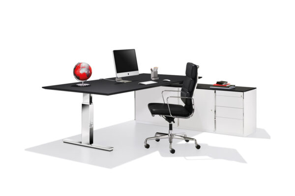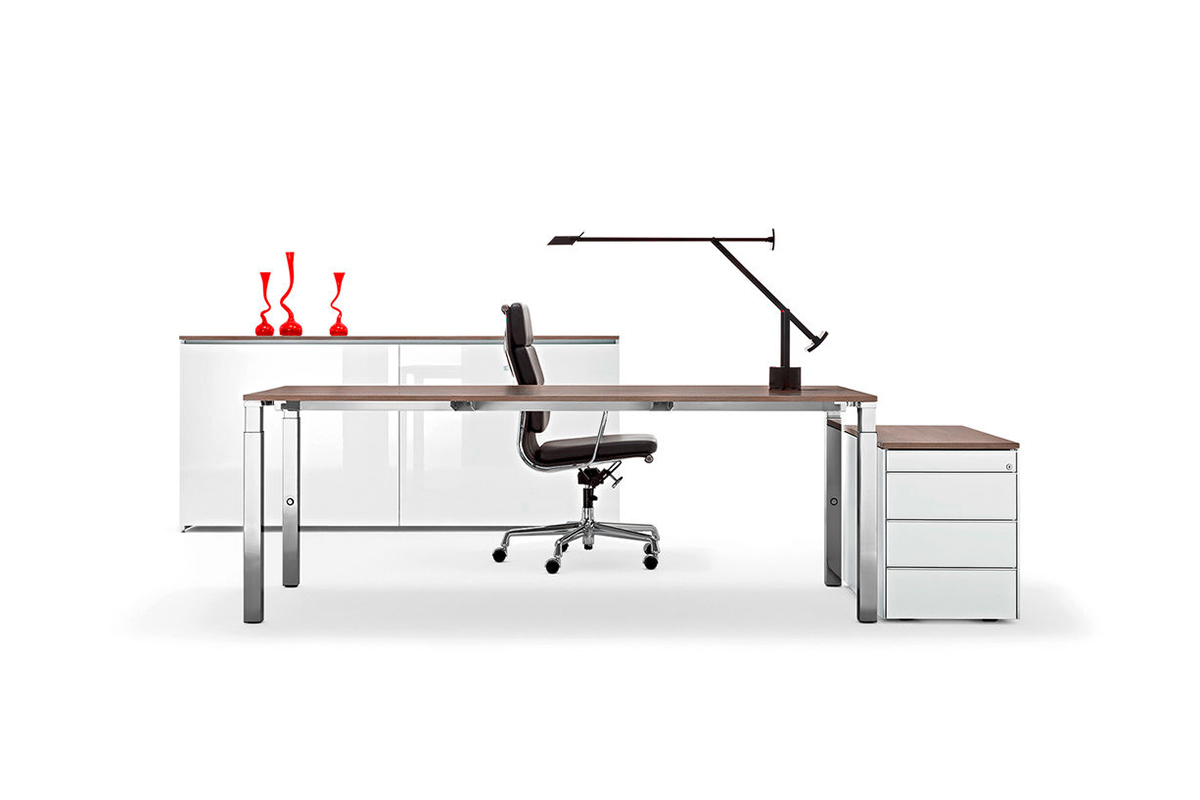 Einfach ein Tisch – und doch viel mehr: klar und zeitlos gestaltet, multivariabel in der Funktion, einfach in der Nutzung, inklusive Steh-Sitz-Funktion.Gemeinsam mit 12 namhaften deutschen Architekten hat WINI das Arbeitsplatzprogramm WINEA PRO entwickelt. Ein Tischsystem, das Funktion, Komfort und Gestaltung und damit alle Argumente für den perfekten Arbeitsplatz miteinander vereint. Klar und zeitlos in der Gestaltung, multivariabel in der Funktion, einfach und komfortabel in der Nutzung. Ein wandelbares, nachhaltiges und langlebiges System, mit dem sich alle Arbeitsbereiche im Büro gestalten lassen: vom ergonomischen Einzel- und Teamarbeitsplatz über die Besprechung, Konferenz und die Workbench bis hin zum Chefbüro. Alles in einem durchgängigen Erscheinungsbild, mit optimaler Funktionalität – wahlweise mit 4-, C- oder T-Fuß-Gestell, mit Container-Auflage oder als DUO-Arbeitsplatz. WINEA PRO entspricht der neuesten EU-Norm EN 527-1:2011 und bietet zur Höheneinstellung von 65 bis 85 cm wahlweise die Einstellung per Knopfdruck, per Werkzeug oder – für C- und T-Fuß-Gestelle – auch per Kurbel. Erweitert wird das multifunktionale Tischsystem durch ergonomische Sitz-Steh-Varianten mit elektromotorischer Höhenverstellung von 65 bis 125 cm und integriertem Antikollisionsschutz.