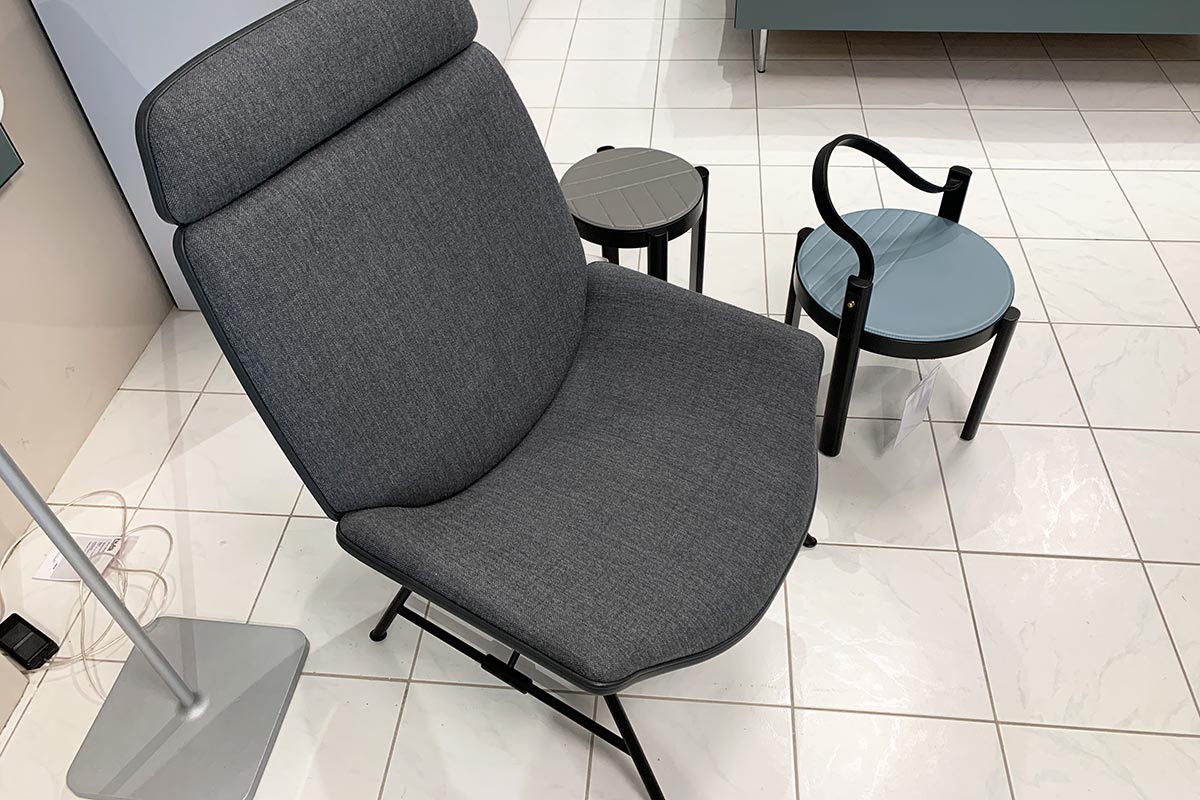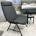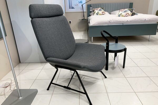 Ausführung: Rückenschale Leder Nappa basalt, Innenseite Bezug Stoff Tekla slate, Keder Nappa basalt, Füße blackgrey pulverbeschichtet (WB 28396)