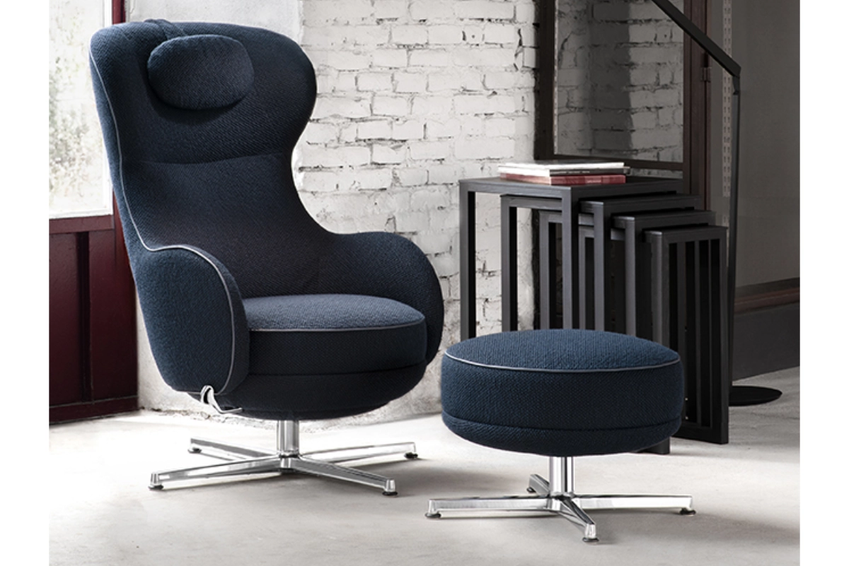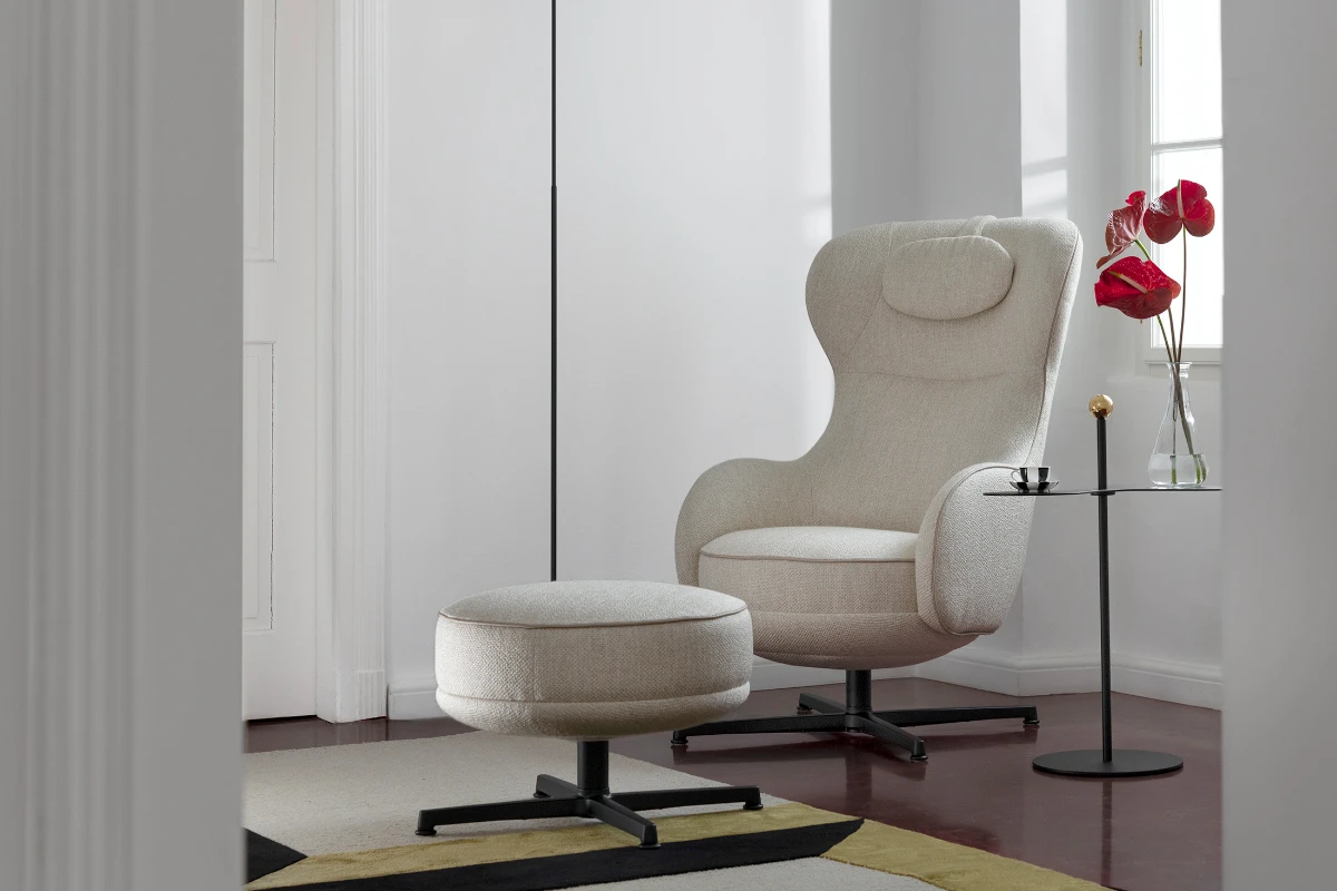 Drehbarer Design-SesselDer Sessel Tuya von Wittmann, verbindet ikonische Ohrensessel-Form mit moderner Relaxfunktion. Die wohlproportionierte Sitzschale wippt sanft, ist 360° drehbar und lässt sich stufenlos in jeder gewünschten Position arretieren – für ein völlig individuelles Sitzerlebnis. Hochwertige Polsterkunst aus österreichischer Manufaktur trifft auf einladende Eleganz, die zum Ankommen und Abschalten einlädt. In Kombination mit dem passenden Hocker wird Tuya zur persönlichen Komfortinsel – ein Solitär für Menschen, die exquisites Design, handwerkliche Qualität und selbstbestimmte Momente der Ruhe schätzen.