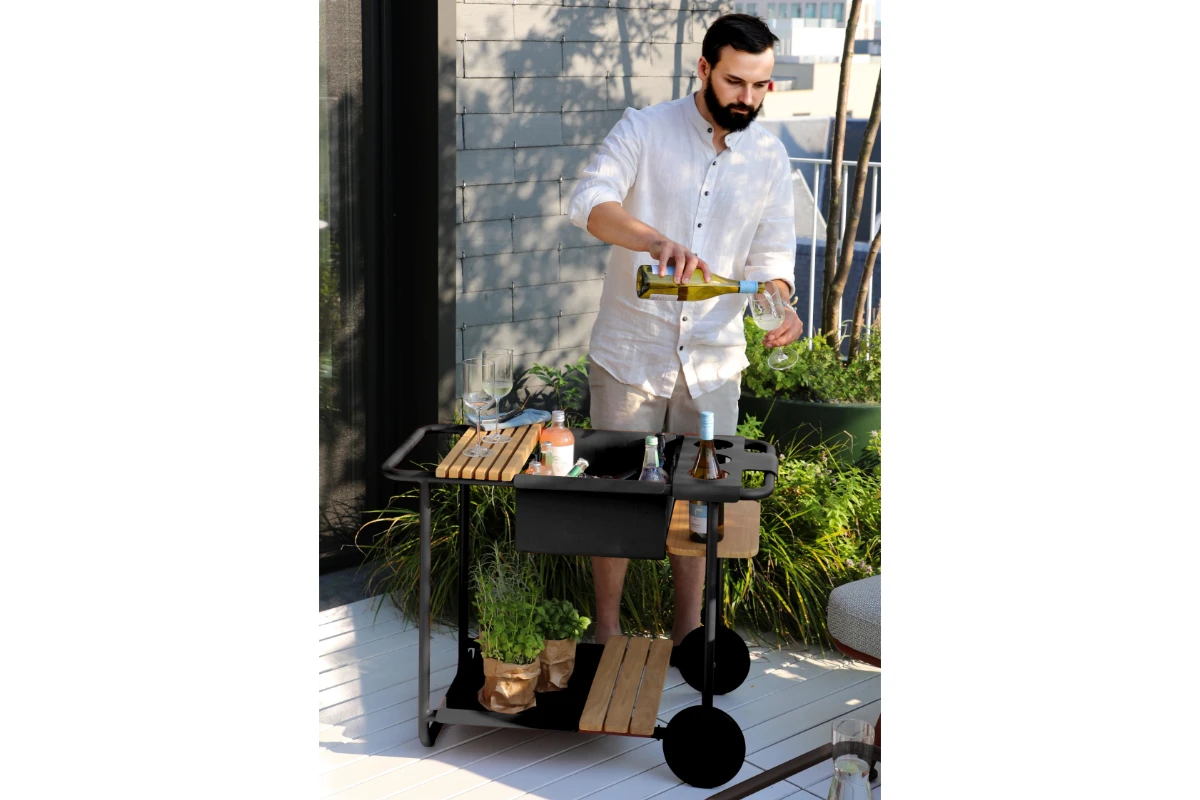 Stilvoller ServierwagenDer Zebra Somerset Trolley ist die perfekte Ergänzung für Ihre Outdoor-Oase. Das pulverbeschichtete Aluminiumgestell sorgt für Stabilität, während die elegante Teak-Tischplatte natürlichen Charme verleiht. Ob für erfrischende Getränke oder stilvolles Servieren – der integrierte Sektkühler/Eisfach macht den Trolley zum Highlight jeder Gartenparty. Mit dem Somerset Trolley genießen Sie luxuriösen Komfort und Funktionalität auf höchstem Niveau.