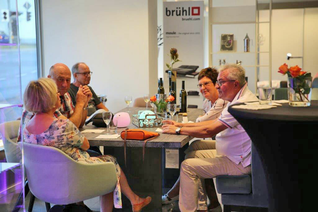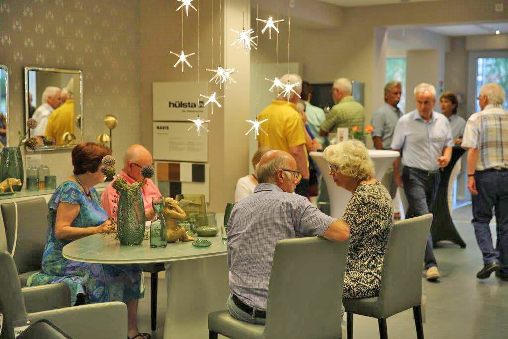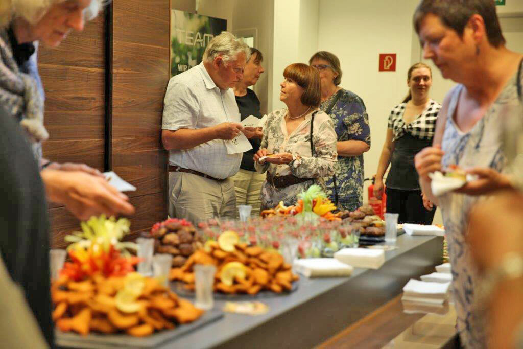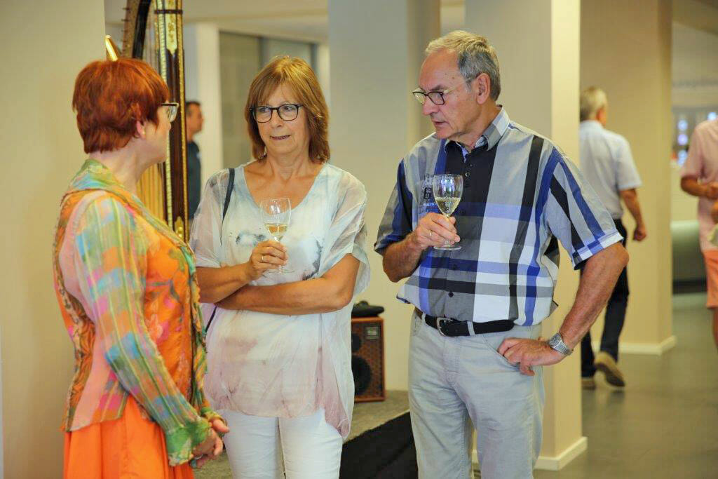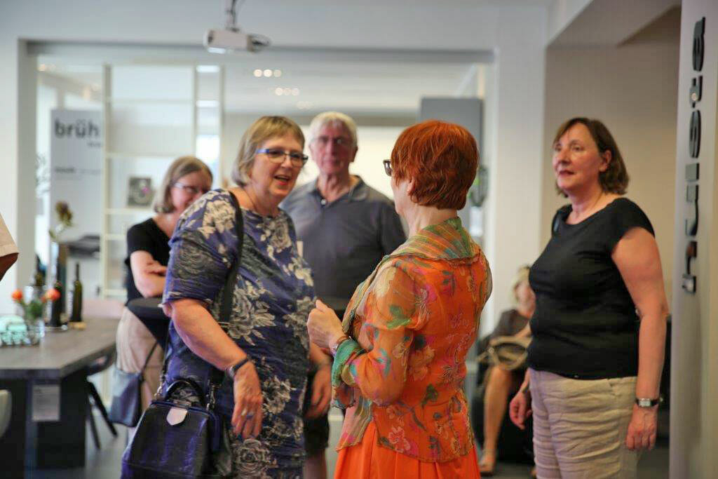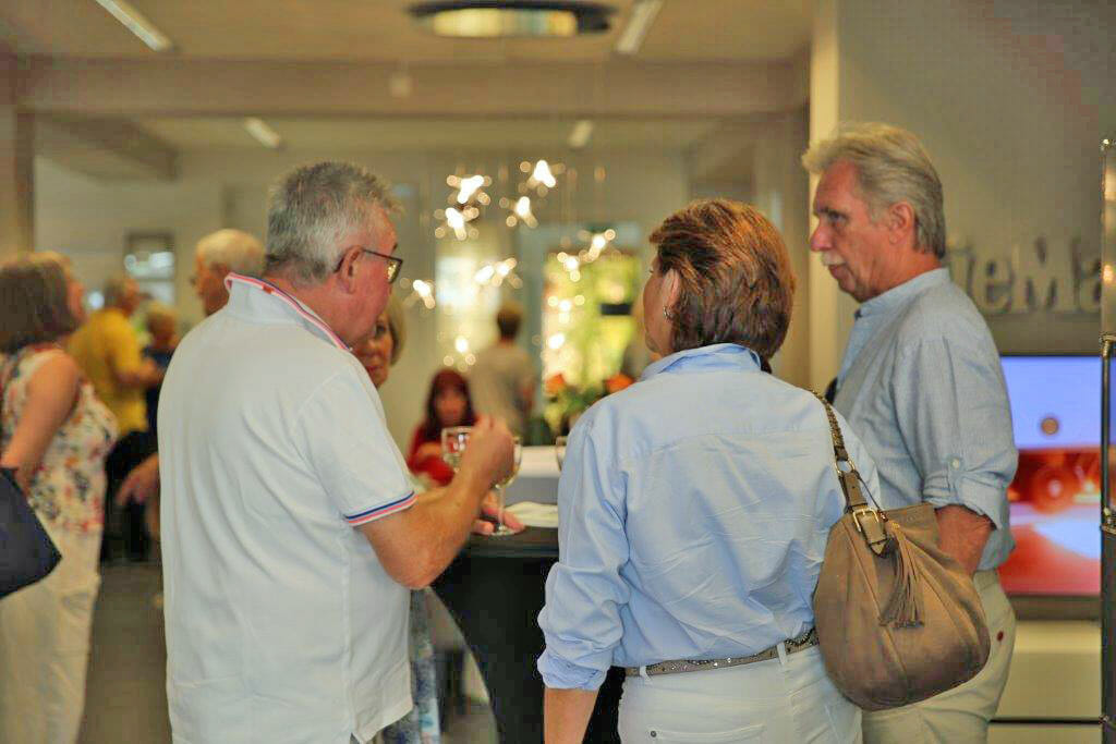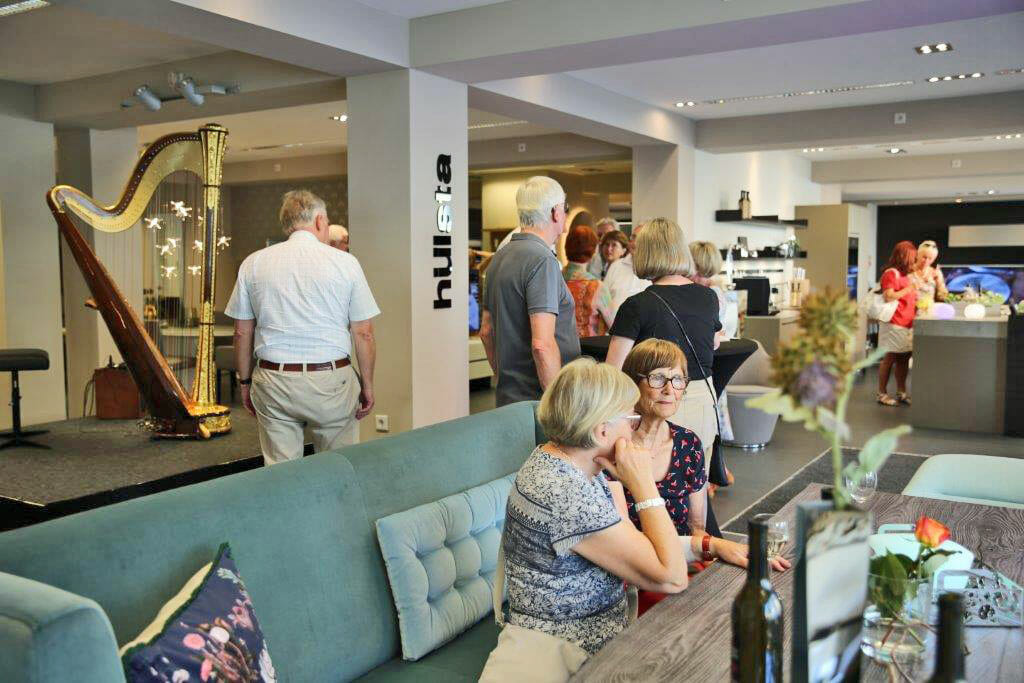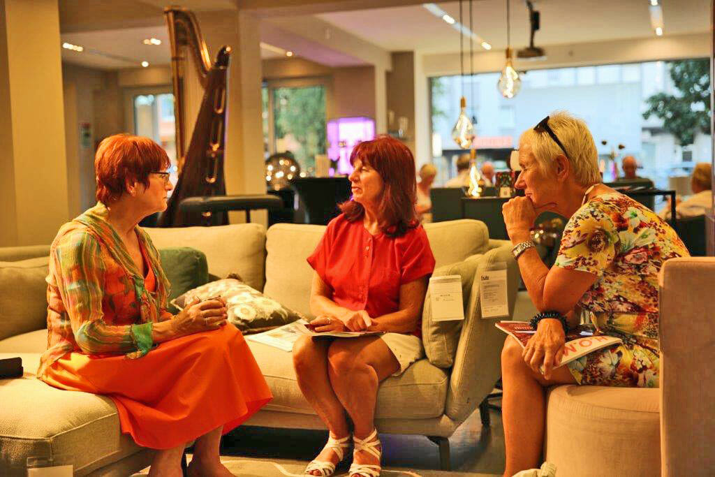 … und das ist auch gut so! Seit einigen Jahren bereichert Angela Wolf unser Team mit ihrem großen Erfahrungsschatz aus mehreren Jahrzehnten als selbstständige Expertin für Inneneinrichtung (Wolf-Wohnkultur). Grund genug ihr und ihren langjährigen Kundinnen und Kunden einen Abend in unserem Hause zu widmen. Trotz tropischer Temperaturen von weit über 30 Grad sind 100 Gäste der Einladung gefolgt! Bei spritzig-fruchtigen Frankenweinen, ausgewählt und ausgeschenkt vom Wuppertaler Weinkonvent e.V., kulinarischen Leckereien des Catering-Service Nickel und Harfenklängen von Ulla van Daelen (Solo-Harfinistin des WDR Rundfunkorchester, WDR Big Band, uvm.) gab es viel zu erzählen. Ein toller Sommerabend, den man sich nicht besser hätte vorstellen können! Vielen Dank allen Gästen und Mitwirkenden!