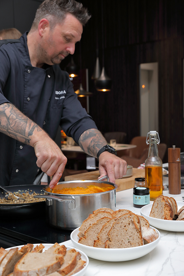 Am 10. Oktober 2024 fand in unserem SieMatic by Hüls Studio in Wuppertal ein exklusives Live Cooking Event in Kooperation mit der Firma BORA statt. Im Rahmen des genussvollen Abends zauberte ein erfahrener Profi-Koch gemeinsam mit den Teilnehmern raffinierte Köstlichkeiten. Auf dem Menüplan standen Tartar 2.0 aus Kürbis und Pilzen, Sekreto vom Ibaiama Schwein und als Abschuss Arme Ritter in einer Neuinterpretation mit Zwetschgen.