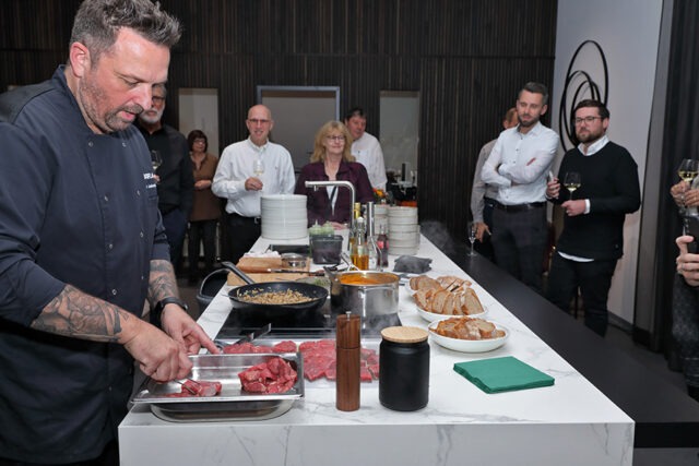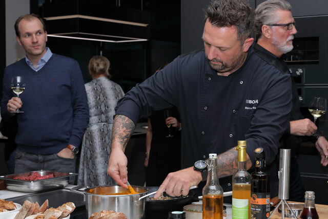 Die geladenen Gäste konnten dem Koch über die Schulter zu schauen und einige Zubereitungstipps erhaschen, sowie sich von den unterschiedlichen SieMatic Stilwelten und Ausstattungsmerkmalen überzeugen.