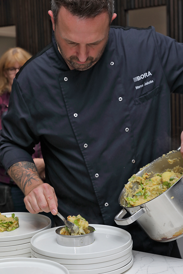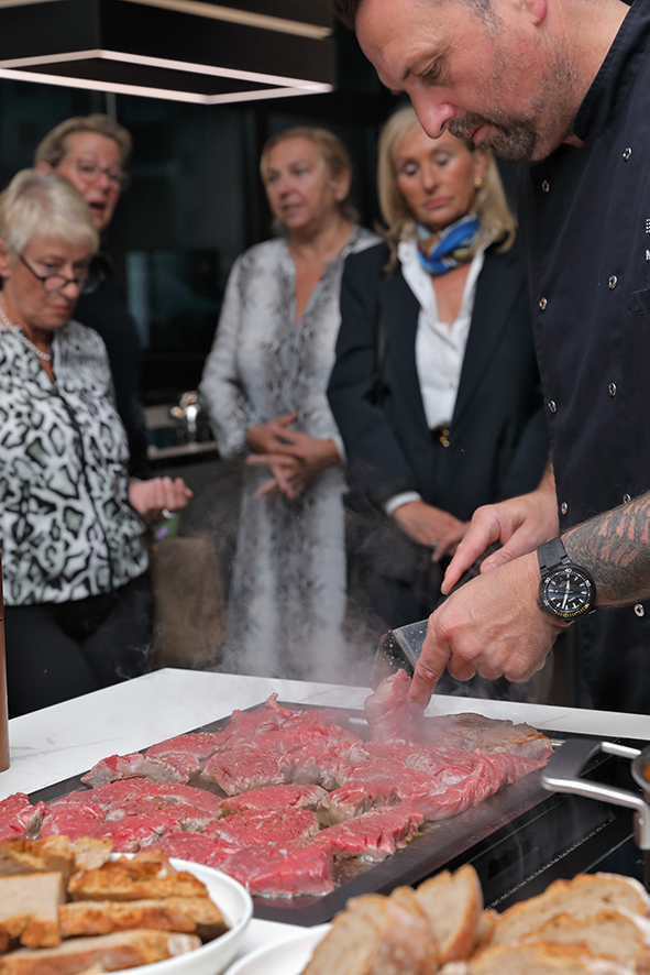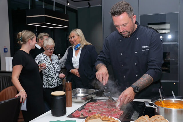Die Gäste hatten die Gelegenheit, die einzigartigen Vorteile der BORA Kochsysteme hautnah zu erleben – vom geräuscharmen Kochdunstabzug bis hin zur einfachen Handhabung. Gekocht wurde am BORA Professional Kochfeld mit integriertem Muldenlüfter und Tepangrill, welche in eine der ausgestellten SieMatic Küchen integriert sind.